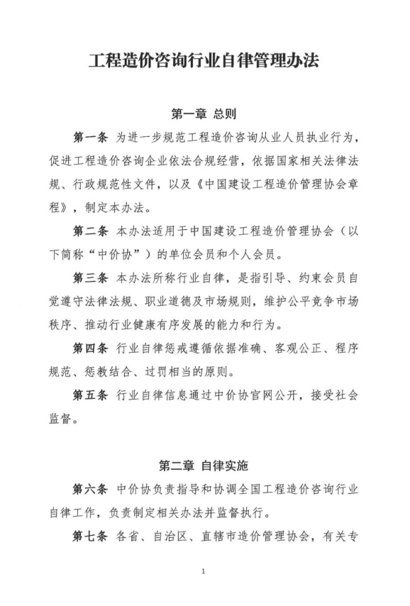 为进一步完善工程造价咨询行业自律体系建设,规范竞争秩序,构建全国统一大市场,我协会组织编制了《工程造价咨询行业自律管理办法》,经第八届理事会第四次常务理事会审议通过,现予以发布。