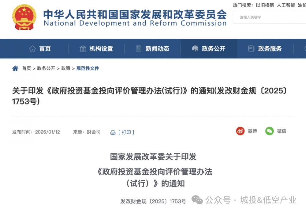 关于印发<<政府投资基金投向评价管理办法(试行)>>的通知(发改财金规〔2025〕1753号)