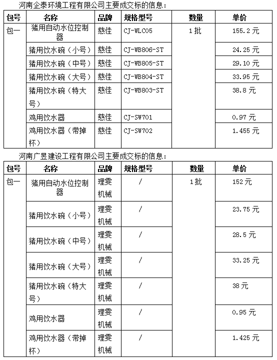 2019年粪污资源化利用项目设备采购(第一批)包一中标结果公告