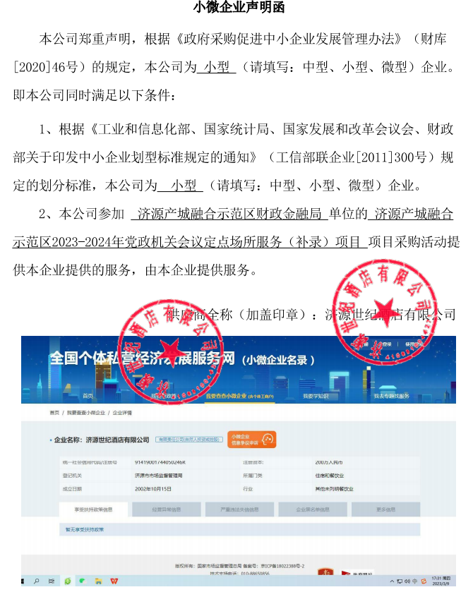 济源产城融合示范区财政金融局采购济源产城融合示范区2023-2024年党政机关会议定点场所服务(补录)项目入围结果公告