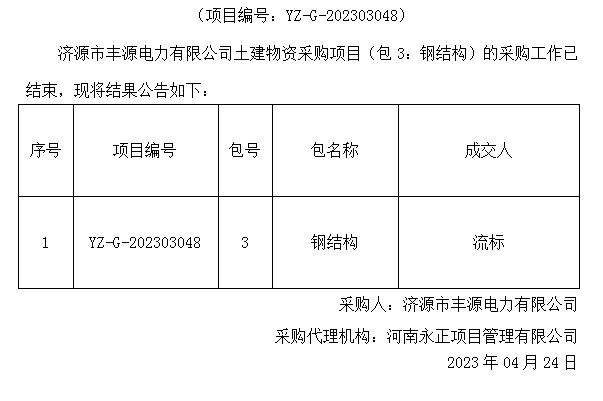 济源市丰源电力有限公司土建物资采购项目(包3:钢结构)废标公告