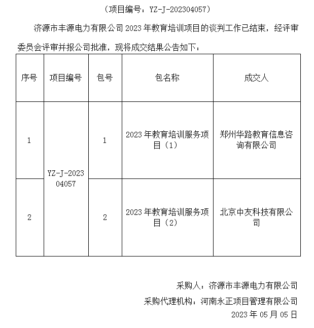 上一篇:济源市丰源电力有限公司2023、2024年度文印广告框架采购成交结果公告