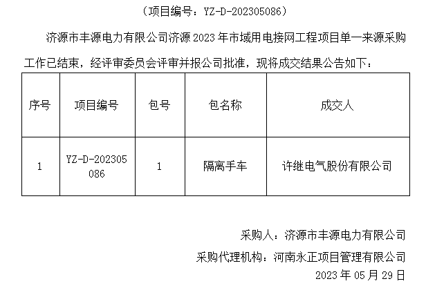 济源市丰源电力有限公司济源2023年市域用电接网工程项目单一来源采购成交结果公告