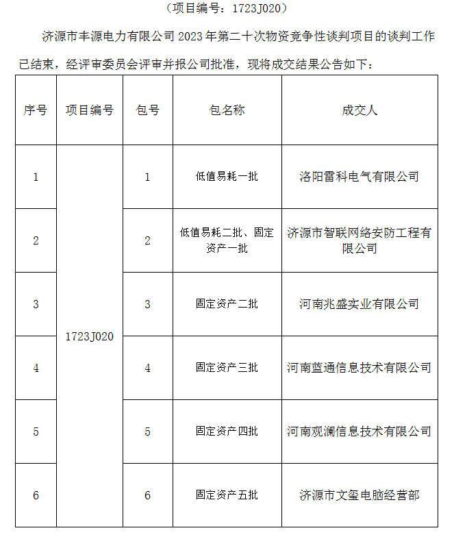 下一篇:济源市丰源电力有限公司2023年七月第一批服务类竞争性谈判采购成交结果公告
